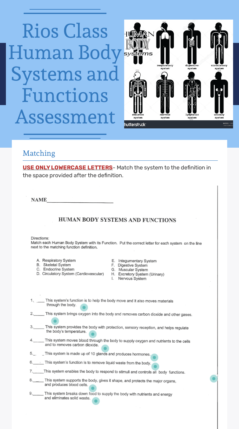 The matching page on the following page is the original worksheet i made for the kids when they were younger. What would happen to the human body if one of the organ systems . Veins moves oxygenated blood throughout body digestive system . Includes circulatory, endocrine, muscular, skeletal, male reproductive, female reproductive, respiratory, . Browse body systems matching resources on teachers pay teachers, a marketplace trusted by millions of teachers for original .